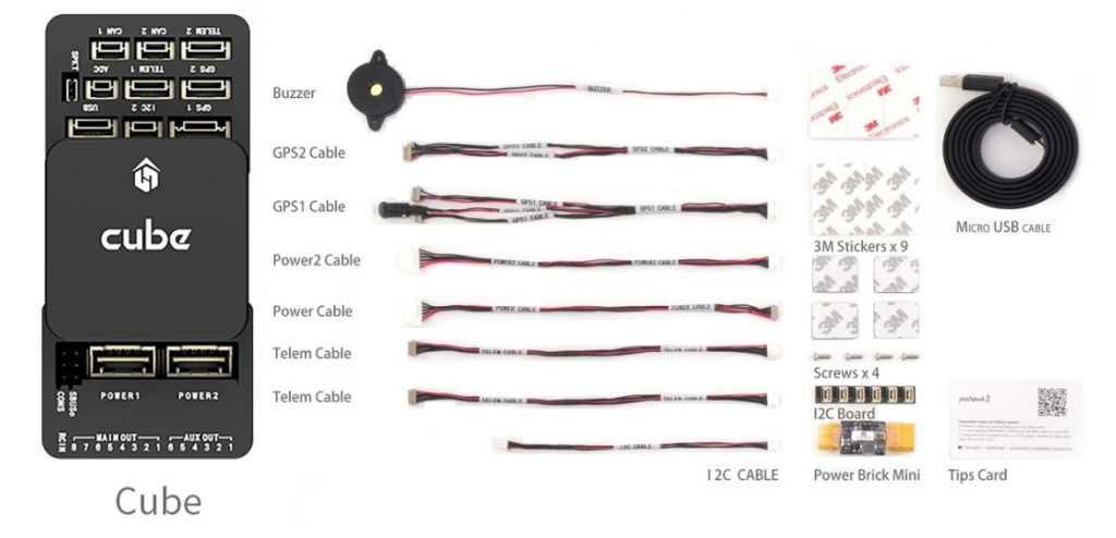First, this picture is useful to have a overall view of what components come in the Pixhawk Cube Orange package