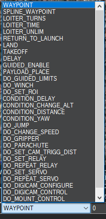 In conclusion, there are different parameters that we can configure in the flight plan in order to give different commands to the Drone according to our needs, below are all that Mission Planner allows you.