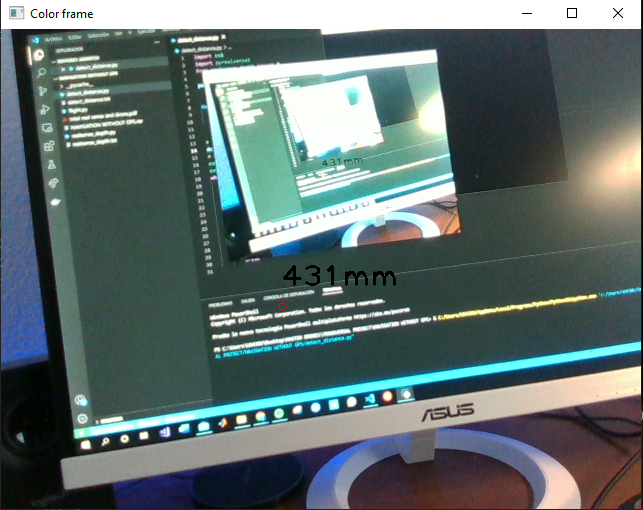 As it can be seen in the previous figure, the camera was pointing to the screen, and in the red point seen there is the distance, in mm, from the camera to the screen.