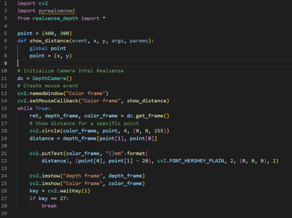 We have created a script in python where the camare give us the distance between a camera and the object that the camera is pointing.